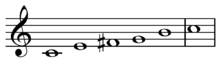 Hirajōshi scale, or hira-choshi (Japanese: 平調子, Hepburn: hirachōshi, chōshi = tuning and hira = even, level, tranquil, standard or regular) is a tuning scale adapted from shamisen music by Yatsuhashi Kengyō for tuning of the koto.[1] "The hirajoshi, kumoijoshi, and kokinjoshi 'scales' are Western derivations of the koto tunings of the same names. These scales have been used by rock and jazz guitarists in search of 'new' sounds."[2]