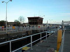 The Hiram M. Chittenden Locks, or Ballard Locks, is a complex of locks at the west end of Salmon Bay, in Seattle, Washington's Lake Washington Ship Canal, between the neighborhoods of Ballard to the north and Magnolia to the south.[2]:2[3][4]:6