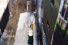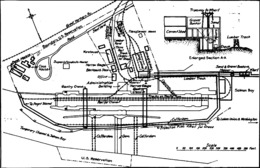 In early 1909, the Washington State Legislature appropriated $250,000, placed under the control of the Corps of Engineers, for excavation of the canal between Lake Union and Lake Washington.[6] In June 1910, the US Congress gave its approval for the lock, on the condition that the rest of the canals along the route be paid for locally.[6] Construction was then delayed by legal challenges, mainly by mill owners in Ballard who feared property damage and loss of waterfront in Salmon Bay, and by Lake Washington property owners.[6]