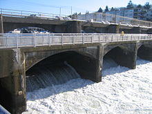 "Smolt flumes" in the spillway help young salmon to pass safely downstream.[4]:8 Higher water levels are maintained in the summer to accommodate recreation as well as to allow the lakes to act as a water storage basin in anticipation of drought conditions.[2]:2