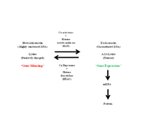 Histone modifications modulate the packing of chromatin. The level of packing of the DNA is important for gene transcription, since the transcriptional machinery must have access to the promoter in order for transcription to occur.[3] Neutralization of charged lysine residues by HATs allows for the chromatin to decondense so that this machinery has access to the gene to be transcribed. However, acetylation is not always associated with enhanced transcriptional activity. For instance, acetylation of H4K12 has been associated with condensed and transcriptionally inactive chromatin.[25] In addition, some histone modifications are associated with both enhanced and repressed activity, in a context-dependent manner.[26]