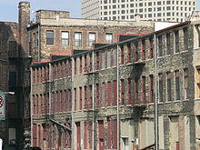 Highway construction displaced the close-knit Italian Third Ward community in the 1960s. The trucking industry and suburb growth led to the decline of warehouse operations and industry. Ironically, Milwaukee's first architectural landmark was named in 1967, the Blessed Virgin of Pompeii Catholic Church, the same year it was demolished for construction of the I-794 freeway.[3]