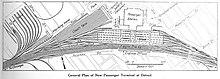 During the 19th century, Detroit grew into a thriving hub of commerce and industry. After a devastating fire in 1805, Augustus B. Woodward devised a street plan similar to Pierre Charles L'Enfant's design for Washington, D.C. Monumental avenues and traffic circles were planned to fan out in radial fashion from Campus Martius Park in the heart of the city. This was intended to ease traffic patterns and trees were planted along the boulevards and parks.[6]