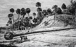 In the 1850s, with the potential transfer of ownership of federal land to the state, including Seminole land, the federal government decided to convince the remaining Seminoles to emigrate.[55] The Army reactivated Fort Harvie and renamed it to Fort Myers.[55] Increased Army patrols led to hostilities, and eventually a Seminole attack on Fort Myers which killed two United States soldiers.[55] The Third Seminole War lasted from 1855 to 1858 which ended with most of the remaining Seminoles, mostly women and children moving to Indian Territory.[50] In 1859, another 75 Seminoles surrendered and were sent to the West, but a small number continued to live in the Everglades.[50]
