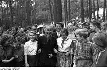 In regards to the memory of the Nazi period in the 1950s Federal Republic, there was a marked tendency to argue that everyone regardless of what side they had been on in World War II were all equally victims of the war.[40]:561 In the same way, the Nazi regime tended to be portrayed in the 1950s as a small clique of criminals entirely unrepresentative of German society who were sharply demarcated from the rest of German society or as the German historian Alf Ludtke argued in popular memory that it was a case of "us" (i.e ordinary people) ruled over by "them" (i.e. the Nazis).[40]:561–62 Though the Nazi regime itself was rarely glorified in popular memory, in the 1950s World War II and the Wehrmacht were intensely gloried and celebrated by the public.[42]:235 In countless memoirs, novels, histories, newspaper articles, films, magazines, and Landserheft (a type of comic book in Germany glorifying war), the Wehrmacht was celebrated as an awesome, heroic fighting force that had fought a "clean war" unlike the SS and which would have won the war as the Wehrmacht was always portrayed as superior to the Allied forces had not been for mistakes on the part of Hitler or workings of "fate".[42]:235 The Second World War was usually portrayed in heavily romantic aura in various works that celebrated the comradeship and heroism of ordinary soldiers under danger with the war itself being shown as "...a great adventure for idealists and daredevils..." who for the most part had a thoroughly fun time.[42]:235 The tendency in the 1950s to glorify war by depicting World War II as a fun-filled, grand adventure for the men who served in Hitler's war machine meant the horrors and hardship of the war were often downplayed. In his 2004 essay "Celluloid Soldiers" about post-war German films, the Israeli historian Omer Bartov wrote that German films of the 1950s always showed the average German soldier as a heroic victim: noble, tough, brave, honourable and patriotic, while fighting hard in a senseless war for a regime that he did not care for.[43] Commendations of the victims of the Nazis tended to center around honoring those involved in the July 20 putsch attempt of 1944, which meant annual ceremonies attended by all the leading politicians at the Bendlerblock and Plötzensee Prison to honor those executed for their involvement in the 20 July putsch.[40]:554–555 By contrast, almost no ceremonies were held in the 1950s at the ruins of the concentration camps like Bergen-Belsen or Dachau, which were ignored and neglected by the Länder governments in charge of their care.[40]:555 Not until 1966 did the Land of Lower Saxony opened Bergen-Belsen to the public by founding a small "house of documentation", and even then it was in response to criticism that the Lower Saxon government was intentionally neglecting the ruins of Bergen-Belsen.[40]:555 Though it was usually claimed at the time that everybody in the Second World War was a victim, Ludtke commented that the disparity between the millions of Deutsche Marks spent in the 1950s in turning the Benderblock and Plötzensee prison into sites of remembrance honoring those conservatives executed after the 20 July putsch versus the neglect of the former concentration camps suggested that in both official and popular memory that some victims of the Nazis were considered more worthy of remembrance than others.[40]:554–555 It was against this context where popular memory was focused on glorifying the heroic deeds of the Wehrmacht while treating the genocide by the National Socialist regime as almost a footnote that in the autumn of 1959 that the philosopher Theodor W. Adorno gave a much-publicized speech on TV that called for Vergangenheitsbewältigung ("coming to terms with the past").[40]:550 Adorno stated that most people were engaged in a process of "willful forgetting" about the Nazi period and used euphemistic language to avoid confronting the period such as the use of the term Kristallnacht (Crystal Night) for the pogrom of November 1938.[40]:550 Adorno called for promoting a critical "consciousness" that would allow people to "come to terms with the past".[40]:551