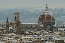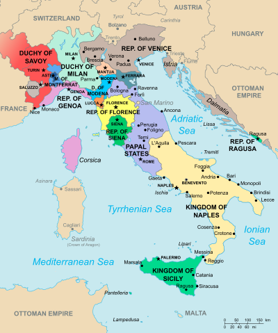 Italian towns had appeared to have exited from Feudalism, so that their society was based on merchants and commerce.[40] Even northern cities and states were also notable for their merchant Republics, especially the Republic of Venice.[41] Compared to feudal and absolute monarchies, the Italian independent communes and merchant republics enjoyed relative political freedom that boosted scientific and artistic advancement.[42]