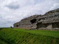 Roman Britain was under attack by Saxon and other raiders in the 3rd century and it became necessary to fortify the once-prosperous commercial port of Rutupiae. Triple ditches and ramparts were dug (still visible round the site of the arch Richborough Castle although the defences were completely revamped after a decade or so and Richborough was provided with its circuit of towered stone walls and outer ditches, becoming one of the most important of the Saxon shore forts. It was one of the last to be regularly occupied and there is evidence of a large Roman population here in the early 5th century, some of them worshipping in the Early Christian church discovered in a corner of the fort.