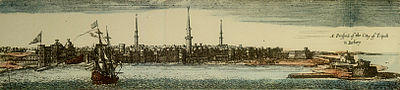 Tripoli was the only city of size in Ottoman Libya (then known as Tripolitania Eyalet) at the end of the 17th century and had a population of about 30,000. The bulk of its residents were Moors, as city-dwelling Arabs were then known. Several hundred Turks and renegades formed a governing elite, a large portion of which were kouloughlis (lit. sons of servants—offspring of Turkish soldiers and Arab women); they identified with local interests and were respected by locals. Jews and Moriscos were active as merchants and craftsmen and a small number of European traders also frequented the city. European slaves and large numbers of enslaved blacks transported from Sudan were also a feature of everyday life in Tripoli. In 1551, Turgut Reis enslaved almost the entire population of the Maltese island of Gozo, some 6,300 people, sending them to Libya.[23] The most pronounced slavery activity involved the enslavement of black Africans who were brought via trans-Saharan trade routes. Even though the slave trade was officially abolished in Tripoli in 1853, in practice it continued until the 1890s.[24]