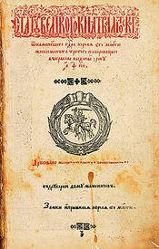 The Lithuanian language fell into disuse in the circles of the grand ducal court in the second half of the 15th century in favor of Polish.[94] A century later, Polish was commonly used even by the ordinary Lithuanian nobility.[94] Following the Union of Lublin, Polonization increasingly affected all aspects of Lithuanian public life, but it took well over a century for the process to be completed. The 1588 Statutes of Lithuania were still written in the Ruthenian Chancery Slavonic language, just as earlier legal codifications were.[95] From about 1700, Polish was used in the Grand Duchy's official documents as a replacement for Ruthenian and Latin use.[96][97] The Lithuanian nobility became linguistically and culturally Polonized, while retaining a sense of Lithuanian identity.[98] The integrating process of the Commonwealth nobility was not regarded as Polonization in the sense of modern nationality, but rather as participation in the Sarmatism cultural-ideological current, erroneously understood to imply also a common (Sarmatian) ancestry of all members of the noble class.[97] The Lithuanian language survived, however, in spite of encroachments by the Ruthenian, Polish, Russian, Belarusian and German languages, as a peasant vernacular, and from 1547 in written religious use.[99]