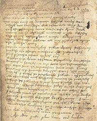 As the power of the Lithuanian warlord dukes expanded to the south and east, the cultivated East Slavic Ruthenians exerted influence on the Lithuanian ruling class.[51] They brought with them the Church Slavonic liturgy of the Eastern Orthodox Christian religion, a written language (Chancery Slavonic) that was developed to serve the Lithuanian court's document-producing needs for a few centuries, and a system of laws. By these means, Ruthenians transformed Vilnius into a major center of Kievan Rus' civilization.[51] By the time of Jogaila's acceptance of Catholicism at the Union of Krewo in 1385, many institutions in his realm and members of his family had been to a large extent assimilated already into the Orthodox Christianity and became Russified (in part a result of the deliberate policy of the Gediminid ruling house).[51][52]