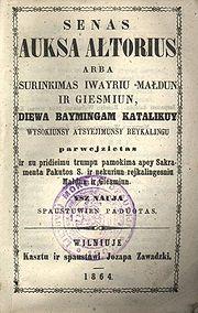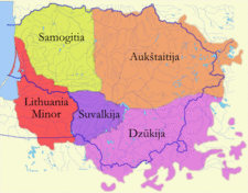 Western Lithuania had an important role in the preservation of the Lithuanian language and its culture. In Samogitia, many nobles never ceased to speak Lithuanian natively. Northeastern East Prussia, sometimes referred to as Lithuania Minor, was populated mainly by Lithuanians[100] and predominantly Lutheran. The Lutherans promoted publishing of religious books in local languages, which is why the Catechism of Martynas Mažvydas was printed in 1547 in East Prussian Königsberg.[101]