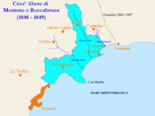 During this time there was unrest in the towns of Menton and Roquebrune, which declared independence, hoping for annexation by Sardinia and participation in the Italian Risorgimento. The unrest continued until the ruling prince gave up his claim to the two towns (some 95% of the country), and they were ceded to France in return for four million francs. This transfer and Monaco's sovereignty was recognised by the Franco-Monegasque Treaty of 1861.