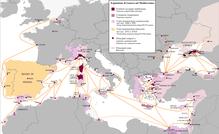 Francesco Grimaldi seized the Rock of Monaco in 1297, starting the Grimaldi dynasty, under the sovereignty of the Republic of Genoa. The Grimaldis acquired Menton in 1346 and Roquebrune in 1355, enlarging their possessions. In 1338 Monegasque ships under the command of Carlo Grimaldi participated, along with those of France and Genoa, in the English Channel naval campaign. Plunder from the sack of Southampton was brought back to Monaco, contributing to the principality's prosperity.[5]