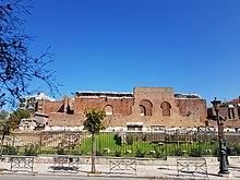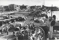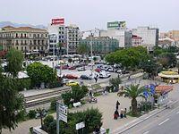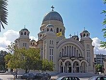 The city benefited from its role as the main export port for the agricultural produce of the Peloponnese.[11] It was the main centre for the organisation of production of raisin, offering warehouse, banking and insurance services. However, this early era of prosperity was short lived; the completion of the Corinth Canal in 1893 challenged the predominance of its port. Besides, in 1894 raisin export prices in the international markets began to plummet, due to overproduction and international circumstances, which triggered a prolonged crisis with deep financial, political and social repercussions, known as the Great raisin crisis.[12] Trade with western Europe, mainly Britain, France and Italy, did much to shape the city's early identity as a significant port and cosmopolitan urban centre in early 20th century Greece.