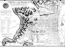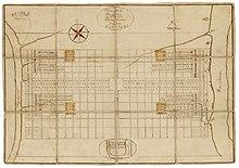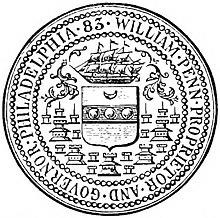 In 1681, as part of a repayment of a debt, Charles II of England granted William Penn a charter for what would become the Pennsylvania colony. Shortly after receiving the charter, Penn said he would lay out "a large Towne or Citty in the most Convenient place upon the Delaware River for health & Navigation."[15] Penn wanted the city to live peacefully in the area, without a fortress or walls, so he bought the land from the Lenape. The legend is that Penn made a treaty of friendship with Lenape chief Tammany under an elm tree at Shackamaxon, in what became the city's Kensington District.[16]