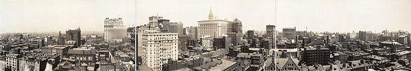 The city's major project was organizing and staging the Centennial Exposition, the first World's Fair in the United States, which celebrated the nation's Centennial. Held in Fairmount Park, exhibits included Alexander Graham Bell's telephone and the Corliss Steam Engine. Beginning May 10, 1876, by the end of the Exposition on November 10, more than nine million people had visited the fair.[68] The city undertook construction of a new city hall, designed to match its ambitions. The project was graft-ridden and it took twenty-three years to complete. Upon completion of its tower in 1894,[69] City Hall was the tallest building in Philadelphia, a position it maintained until One Liberty Place surpassed it in 1986.[70]