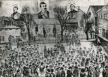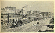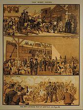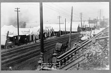 Seattle's Chinese district, located near the present day Occidental Park, was a mixed neighborhood of residences over stores, laundries, and other retail storefronts.[30] In fall 1885, with a shortage of jobs in the West, many workers turned violently anti-Chinese, complaining of overly cheap labor competition. In the Pacific Northwest, this had the unusual character that the anti-Chinese mobs included significant numbers of the native Indians as well as European-Americans.