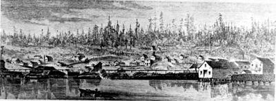 At first, Alki was larger than Seattle. "It was platted into six blocks of eight lots... and most of them had buildings on them that were in use. There weren't eight level, usable blocks in all of Seattle".[19] However, when Henry Yesler brought "financial backing from a Massillon, Ohio capitalist, John E. McLain, to start a steam sawmill once he had isolated the perfect location for such a structure",[20] he chose a Seattle location, on the waterfront where Maynard and Denny's plats met. Thereafter, Seattle would dominate the lumber industry.