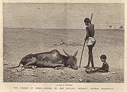 "The earliest discovered instance ... of well-established, settled agricultural society is at Mehrgarh in the hills between the Bolan Pass and the Indus plain (today in Pakistan) (see Map 3.1). From as early as 7000 BCE, communities there started investing increased labor in preparing the land and selecting, planting, tending, and harvesting particular grain-producing plants. They also domesticated animals, including sheep, goats, pigs, and oxen (both humped zebu [Bos indicus] and unhumped [Bos taurus]). Castrating oxen, for instance, turned them from mainly meat sources into domesticated draft-animals as well."[45]