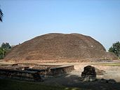 During the time between 800 and 200 BCE the Śramaṇa movement formed, from which originated Jainism and Buddhism. In the same period, the first Upanishads were written. After 500 BCE, the so-called "second urbanisation" started, with new urban settlements arising at the Ganges plain, especially the Central Ganges plain.[75] The foundations for the "second urbanisation" were laid prior to 600 BCE, in the Painted Grey Ware culture of the Ghaggar-Hakra and Upper Ganges Plain; although most PGW sites were small farming villages, "several dozen" PGW sites eventually emerged as relatively large settlements that can be characterized as towns, the largest of which were fortified by ditches or moats and embankments made of piled earth with wooden palisades, albeit smaller and simpler than the elaborately fortified large cities which grew after 600 BCE in the Northern Black Polished Ware culture.[76]