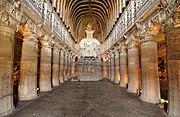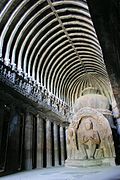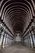 The Great Chaitya in the Karla Caves. The shrines were developed over the period from 2nd century BCE to the 5th century CE.