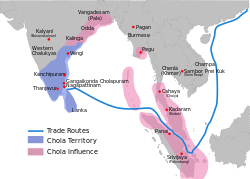 The most significant event between the 7th and 11th century was the Tripartite struggle centred on Kannauj that lasted for more than two centuries between the Pala Empire, Rashtrakuta Empire, and Gurjara-Pratihara Empire. Southern India saw the rise of multiple imperial powers from the middle of the fifth century, most notably the Chalukya, Chola, Pallava, Chera, Pandyan, and Western Chalukya Empires. The Chola dynasty conquered southern India and successfully invaded parts of Southeast Asia, Sri Lanka, the Maldives, and Bengal[13] in the 11th century.[14][15] In the early medieval period Indian mathematics, including Hindu numerals, influenced the development of mathematics and astronomy in the Arab world.[16]