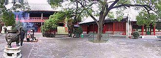 The fall of the Ming Dynasty and the subsequent establishment of the Qing dynasty by the Manchus was blamed by some literati on religion, specifically Taoism. They sought to regain power by advocating a return to Confucian orthodoxy in a movement called Hanxue, or "Han Learning." This movement returned the Confucian classics to favor and nearly completely rejected Taoism. During the eighteenth century, the imperial library was constituted, but excluded virtually all Taoist books.[46] Through the Qing-administered agency Bureau of Taoist Registrations, the number of officially ordained Taoist masters was limited. Sponsored Taoist ritual and study sites were also restricted and controlled.[47] By the beginning of the twentieth century, Taoism had fallen much from favor (only one complete copy of the Daozang still remained, at the White Cloud Monastery in Beijing).[48]