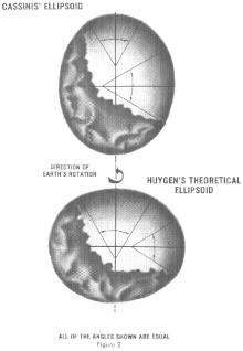 A discovery made in 1672-1673 by Jean Richer turned the attention of mathematicians to the deviation of the Earth's shape from a spherical form. This astronomer, having been sent by the Academy of Sciences of Paris to Cayenne, in South America, for the purpose of investigating the amount of astronomical refraction and other astronomical objects, notably the parallax of Mars between Paris and Cayenne in order to determine the Earth-Sun distance, observed that his clock, which had been regulated at Paris to beat seconds, lost about two minutes and a half daily at Cayenne, and that in order to bring it to measure mean solar time it was necessary to shorten the pendulum by more than a line (about 1&fras1;12th of an in.). This fact was scarcely credited till it had been confirmed by the subsequent observations of Varin and Deshayes on the coasts of Africa and America.[33][34]