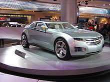 January 7: General Motors' Chevrolet Volt was unveiled at Detroit's North American International Auto Show.[42][43] The Volt is part of GM's E-Flex architecture, which is expected to initially feature a plug-in capable, battery-dominant series hybrid architecture. Future E-Flex plug-in hybrid vehicles may use gasoline, diesel, or hydrogen fuel cell power to supplement the vehicle's battery. General Motors envisions an eventual progression of E-Flex vehicles from plug-in hybrids to pure electric vehicles, as battery technology improves.[44] General Motors presented the Volt as a PHEV-40 that starts its engine when 40% of the battery charge remains, and which can achieve a fuel economy of 50 mpg (4.7 l/100 km), even if the vehicle is not plugged in.[45]