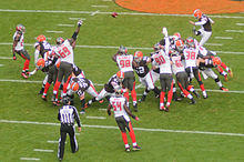 The poor 2009 record of Tampa Bay was in part due to a youthful, inexperienced team (barring a few exceptions such as 35-year-old CB Ronde Barber, the last remaining member of the 2002 Super Bowl team), and it was hoped that they would improve with time. The Buccaneers got off to a 2–0 start in 2010 by beating Cleveland and Carolina, but both proved weak opponents and they could never handle Pittsburgh, a team only two years removed from its 2008 Super Bowl win, losing 38–13. Following their bye week, they beat the Bengals in Cincinnati 24–21. After the road victory in Cincinnati, the Bucs came home to face the defending Super Bowl champion Saints, who were struggling after a loss to the Arizona Cardinals in which the Cardinals did not score an offensive touchdown, but capitalized on New Orleans turnovers. A victory would have helped the Bucs towards first place in the NFC South; however, they were blown out 31–6. The next week saw another home deficit against the St. Louis Rams with the Bucs trailing 6–17 at halftime. Strong defense shut down the Rams’ offense in the second half, and with two field goals and a late touchdown pass to Carnell “Cadillac” Williams, the Bucs topped the Rams 18–17. After the game with the team standing at 4–2, head coach Raheem Morris would famously state, “We’re the best team in the NFC.”[24] The following week, the Bucs would make good on Morris's claim by defeating the Arizona Cardinals on the road in a game where they led 31–14, fell behind late 35–31, then retook the lead 38–35 and sealed the victory with an Aqib Talib interception of Cardinals quarterback Derek Anderson near the end zone. With the Bucs and the Atlanta Falcons tied for first place in the division at 5–2, a matchup in Atlanta gave the Bucs a chance to take sole possession of first place. Trailing 27–14 in the second half, Bucs returner Micheal Spurlock returned a Falcons kickoff for a touchdown to put the Bucs within a touchdown of the lead. The game came down to fourth down attempt to score from the Falcons 1 yard-line. Rookie running back LeGarrette Blount was stopped up the middle and gave the Falcons the close victory. Following the tough loss, the Bucs came home and defeated the Carolina Panthers 31–16 before going on the road against the San Francisco 49ers and pitching a 21–0 shutout. The next week, the Bucs road game against the Baltimore Ravens, their fourth game away from Raymond James Stadium in five weeks, was moved to a late start, and the Bucs lost a hard-fought defensive struggle 17–10. Finally returning home the next week, the team sported their throwback creamsicle uniforms and honored coach John McKay at halftime in a home contest against the Falcons on national television. With a great defensive performance and two interceptions of Falcons quarterback Matt Ryan, it seemed the Bucs would get revenge on the Falcons for their loss four weeks ago, leading 24–14 deep in the second half. But Falcons returner Eric Weems returned a kick for a touchdown and the Falcons scored offensively to take a 28–24 lead. Quarterback Josh Freeman attempted the late comeback as he had against the Browns, Bengals, Rams, and Cardinals, but was denied with a Brent Grimes interception. At 7–5, the Bucs’ playoff hopes seemed less assured, and the team had yet to defeat an opponent with a winning record, while several key starters had been lost for the season. In a rainy outing at Washington, the Bucs prevailed 17–16 thanks to a botched extra-point attempt by the Redskins, but lost to the Detroit Lions at home in overtime to break the Lions' historic road losing streak. Needing help to make the playoffs as a wild-card team, the Bucs routed the eventual NFC West champion Seattle Seahawks 38–15 in Tampa. With the last week of the regular season on the slate, the Bucs needed to defeat the New Orleans Saints in the Superdome, then hope for the defeats of the Green Bay Packers and the New York Giants by the Chicago Bears and Washington Redskins, respectively, as both teams held playoff tiebreakers over the Buccaneers. The Saints planned to fight the Bucs equally hard, as a victory and a Falcons loss to the Carolina Panthers would give them the #1 seed in the NFC. The game was close and hard-fought throughout the first half, but two key turnovers by the Bucs defense, a Barrett Ruud forced fumble of Saints running back Julius Jones near the Bucs' goal line and an interception of Saints quarterback Drew Brees near the end of the half, gave the Bucs the slight edge. A Saints field goal in the fourth quarter cut the Tampa Bay lead to 20–13, but with the Falcons holding a large lead over the Panthers, Saints coach Sean Payton chose to sit Brees and put in backup Chase Daniel. The Bucs held on and won the game 23–13,[25] finishing the season with a 10–6 record, their best since 2005. However, the Packers and Giants both won close games as well, thus sending the eventual Super Bowl champion Packers to the playoffs. For the second time in three years, the Bucs had finished with a winning record, yet missed the playoffs. The season marked a 7-game improvement over the previous one, and was highlighted by the superb play of second-year quarterback Josh Freeman and a strong rookie class led by Gerald McCoy, Arrelious Benn, Mike Williams, Cody Grimm, and LeGarrette Blount. No Buccaneers were selected to the Pro Bowl, but left tackle Donald Penn did play in the game as a replacement for Green Bay's Chad Clifton, marking Penn's first appearance. Raheem Morris finished second in AP NFL Coach of the Year voting, and Mike Williams finished second in Offensive Rookie of the Year voting.
