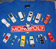 In early 2013, a board game version of the Monopoly Hotels online game was released.[151] From January 8 to February 5, 2013, through the Monopoly page on Facebook in a campaign called "Save Your Token", Hasbro took votes from the public to make another permanent change in the lineup of game tokens. The token with the lowest number of "Save Your Token" votes will be retired, and replaced with one of five other tokens, depending on which of the new candidates gets the most votes. The potential tokens were a robot, a helicopter, a cat, a guitar or a diamond ring.[152] Neither the biplane nor the piggy bank from the 1998 vote are being considered this time. Early on February 6, it was announced that the iron would be retired for having received the fewest votes, and the cat would be replacing it, having received the most votes.[153] Starting in February 2013, the U.S. discount chain Target began selling a "Golden Token" set with the eight classic tokens and all five candidates.[154] Special editions with the thirteen golden tokens have also been released in the UK and France.[155][156] The first Monopoly game to have the new token lineup was released in June 2013.[157] In 2015, the game celebrated its 80th anniversary with eight tokens from each decade in a special edition.