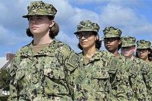 On April 29, 2010, the United States Navy authorized women to serve aboard submarines.[107] Previously, objections such as the need for separate accommodation and facilities (estimates that modifying submarines to accommodate women would cost $300,000 per bunk versus $4,000 per bunk on aircraft carriers) had prevented the change.[108] The Navy stated that larger SSGN and SSBN submarines had more available space and could accommodate female officers with little/no modification. Qualified female candidates with the desire to serve were available. (Women then represented 15 percent of active duty sailors[109] and were earning about half of all science and engineering bachelor's degrees.)[109][110]
