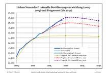 Recent Population Development and Projections (Population Development before Census 2011 (blue line); Recent Population Development according to the Census in Germany in 2011 (blue bordered line); Official projections for 2005-2030 (yellow line); for 2014-2030 (red line); for 2017-2030 (scarlet line)