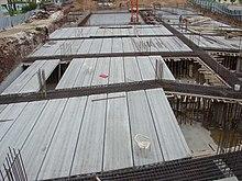A hollow core slab, also known as a voided slab, hollow core plank or simply a concrete plank is a precast slab of prestressed concrete typically used in the construction of floors in multi-story apartment buildings. The slab has been especially popular in countries where the emphasis of home construction has been on precast concrete, including Northern Europe and former socialist countries of Eastern Europe. Precast concrete popularity is linked with low-seismic zones and more economical constructions because of fast building assembly, lower self weight (less material), etc. Precast hollow-core elements is also known as the most sustainable floor/roof system and has far smaller CO2 footprint than even cross-laminated timber slabs.