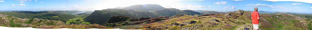 Despite its modest altitude, the hill's relative isolation means it commands good views to north, south and east, including almost the full length of Coniston Water, with Wetherlam and the rest of the Coniston fells blocking distant views in the south-western quadrant.[3][4]