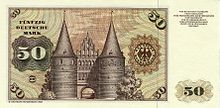 The Holsten Gate appears on the 50 DM bank notes produced from 1960 to 1991 and on the German two-euro coin issued in 2006.