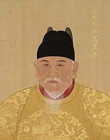 The Hongwu Emperor (21 October 1328 – 24 June 1398)[4] Zhu Yuanzhang (Chinese: 朱元璋; Wade–Giles: Chu Yuan-chang), was the founding emperor of the Ming dynasty, reigning from 1368 to 1398.[5]