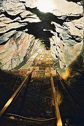 A 600 mm (1 ft 11 5&fras1;8 in) narrow gauge industrial railway is used to assist in the slate extraction process.[1]