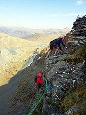 Attractions around the mine complex include a visitor centre, underground tours of the workings, and England's first via ferrata, where participants use a safety harness to scale a cliff path. This attraction proved to be very popular and in 2011 was awarded winner of “Best Tourism Experience in The Lake District" by Cumbria Tourism. Using the original Miners track up the steep outer incline of Fleetwith Pike, the via ferrata is both physically and mentally challenging.[2]