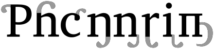 | ʯ | Turned h with fishhook and tail | top and bottom | ||