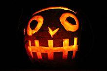 At the modern Hop-tu-Naa, children dress up and go from house to house hoping to be given sweets or money, as elsewhere. The children carry carved "turnip" lanterns (which are known as "moots" by the Manx) and sing Hop-tu-Naa songs. There are regional varieties of how turnips should be carved for Hop-tu-Naa, with variations focusing on which way up the turnip is and the nature of the decorations.[1] It is believed that turnip-lanterns do not date earlier than the start of the 19th century, as the vegetable had only been introduced at the end of the previous century.[3] In the past children would bring the stumps of turnips with them and batter the doors of those who refused to give them any money, in an ancient form of trick or treat. This practice appears to have died out.[4]