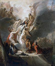 Nelson joined Jervis's fleet off Cape St Vincent, and reported the Spanish movements.[109] Jervis decided to give battle and the two fleets met on 14 February 1797. Nelson found himself towards the rear of the British line and realised that it would be a long time before he could bring Captain into action.[109] Instead of continuing to follow the line, Nelson disobeyed orders and wore ship, breaking from the line and heading to engage the Spanish van, which consisted of the 112-gun San Josef, the 80-gun San Nicolas and the 130-gun Santísima Trinidad. Captain engaged all three, assisted by HMS Culloden which had come to Nelson's aid. After an hour of exchanging broadsides which left both Captain and Culloden badly damaged, Nelson found himself alongside San Nicolas. He led a boarding party across, crying "Westminster Abbey or glorious victory!" and forced her to surrender.[110] San Josef attempted to come to the San Nicolas's aid, but became entangled with her compatriot and was left immobile. Nelson led his party from the deck of San Nicolas onto San Josef and captured her as well.[109] As night fell, the Spanish fleet broke off and sailed for Cadiz. Four ships had surrendered to the British and two of them were Nelson's.[111]