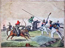 During the Napoleonic Wars, the Russian Imperial Army deployed Cossack, Bashkir, and Kalmyk horse archers against Napoleon's forces. Baron de Marbot writes that on the eve of the Battle of Leipzig, his forces encountered mounted archers: