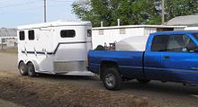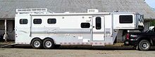 A horse trailer or horse van (also called a horse float in Australia and New Zealand or horsebox in the British Isles) is used to transport horses. There are many different designs, ranging in size from small units capable of holding two or three horses, able to be pulled by a pickup truck or even a SUV; to gooseneck designs that carry six to eight horses, usually pulled by 1-ton dually-style pickups. There are also large semi-trailers that can haul a significant number of animals. In the UK, a horsebox may also refer to a motorised vehicle adapted to carry horses (generally known as a horse van in North America or Australasia), or a railway vehicle specifically designed to carry horses.