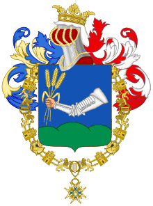 Miklós Horthy de Nagybánya was born at Kenderes to an untitled lower nobility (regarded as equivalent to the British gentry), descended from István Horti, ennobled by King Ferdinand II in 1635.[10] His father, István Horthy de Nagybánya, was a member of the House of Magnates, the upper chamber of the Diet of Hungary, and lord of a 1,500 acre estate.[11] He married Hungarian noblewoman Paula Halassy de Dévaványa in 1857.[11][12] Miklós was the fourth of their eight children.[13]