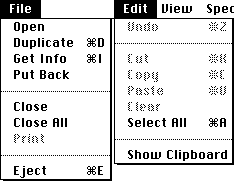 The original Macintosh User Interface Guidelines defined a set of keyboard shortcuts that would remain consistent across application programs. This provides a better user experience than the then-prevalent situation of applications using the same keys for different functions. This could result in user errors if one program used ⌘ Command+D to mean Delete while another used it to Duplicate an item. The standard bindings were: