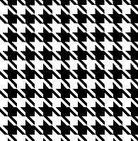 Houndstooth, hounds tooth check or hound's tooth (and similar spellings), also known as dogstooth, dogtooth, dog's tooth, or pied-de-poule, is a duotone textile pattern characterized by broken checks or abstract four-pointed shapes, often in black and white, although other colours are used. The classic houndstooth pattern is an example of a tessellation.