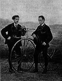 The first universally accepted record was in 1876 when the American Frank Dodds rode 26.508 km (16.471 mi) on a penny-farthing.[1] The first recorded distance[2] was set in 1873 by James Moore in Wolverhampton, riding an Ariel 49" high wheel (1.2 m) bicycle; however, the distance was recorded at exactly 14.5 miles (23.3 km), leading to the theory that the distance was just approximated and not accurately measured.[3]