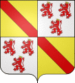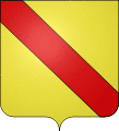 The coat of arms of the family is blazoned as Or a bend gules.[6]