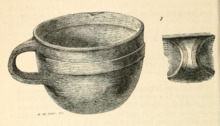 Projection of handle from surface of cup to outer surface of handle, .85; average thickness of cup, .2.According to these measurements I find, by calculation, that the capacity of the cup is a little more than half a pint.[4]